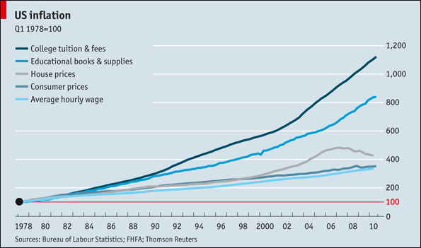 Rising debt for kids seeking to obtain a college degree and graduate/professional degree.